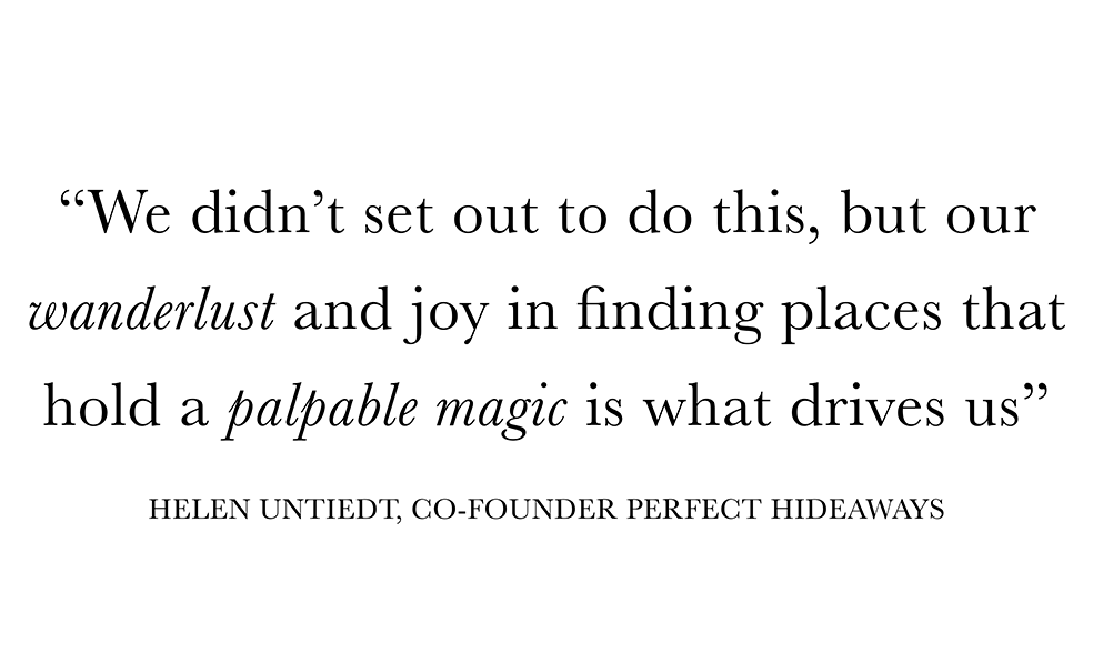 Since 2005, co-founders Helen and David Untiedt have made it their mission to find the most beautiful hideaways imaginable to share with guests who want to ‘escape the ordinary’. The Perfect Hideaways journey has been about identifying precisely what it is that makes a holiday home ‘perfect’.
