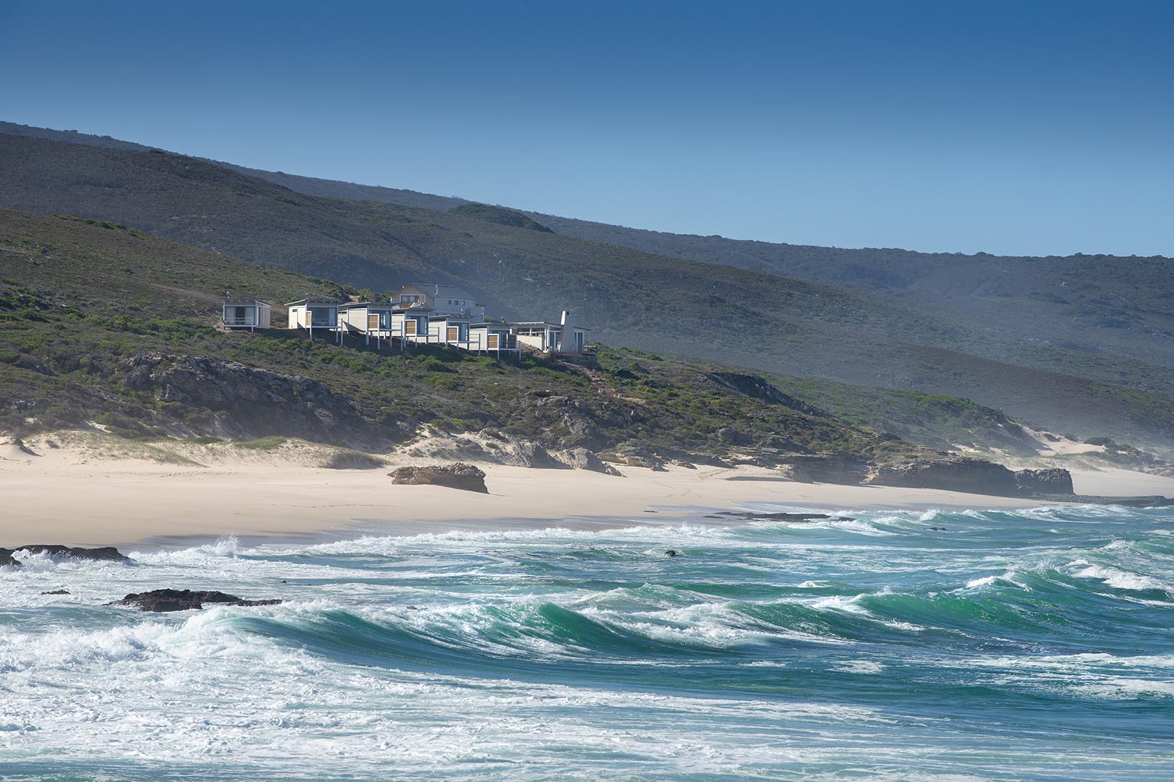 Situated in De Hoop Nature Reserve near the southern tip of Africa, Lekkerwater is a magnificent beach lodge. Just over three hours’ drive from Cape Town, it offers a unique, all-inclusive coastal escape on a six-kilometre stretch of private beach. In the winter season, this spot boasts some of the finest shore-based whale watching on the planet. In fact, Time magazine recently named Lekkerwater one of the world’s top 100 must-visit destinations.