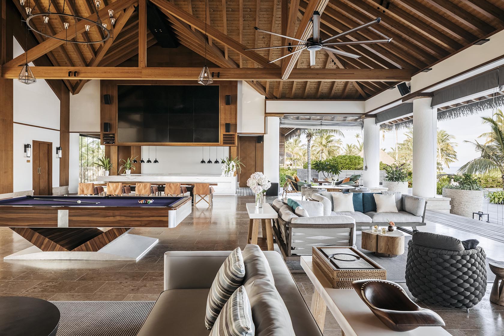 The Haali – which means ‘the nest’ in Dhivehi – is the estate’s entertainment centre where a common living area extends itself into lavish pods of a playground. A Padel and tennis court, an overwater spa and wellness centre, a yoga pavilion, and more languid lounging areas around an infinity swimming pool so that you can all congregate at your leisure. Tapping into the bountiful bliss of the island. With the main resort being only a two-minute boat ride away, where the fine-dining resort and myriad of activities are available for the whole clan, you can opt to dip in and out of the other facilities as you so wish.