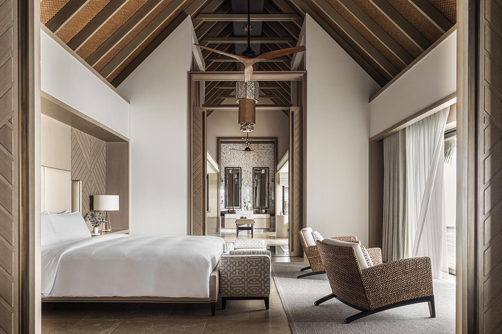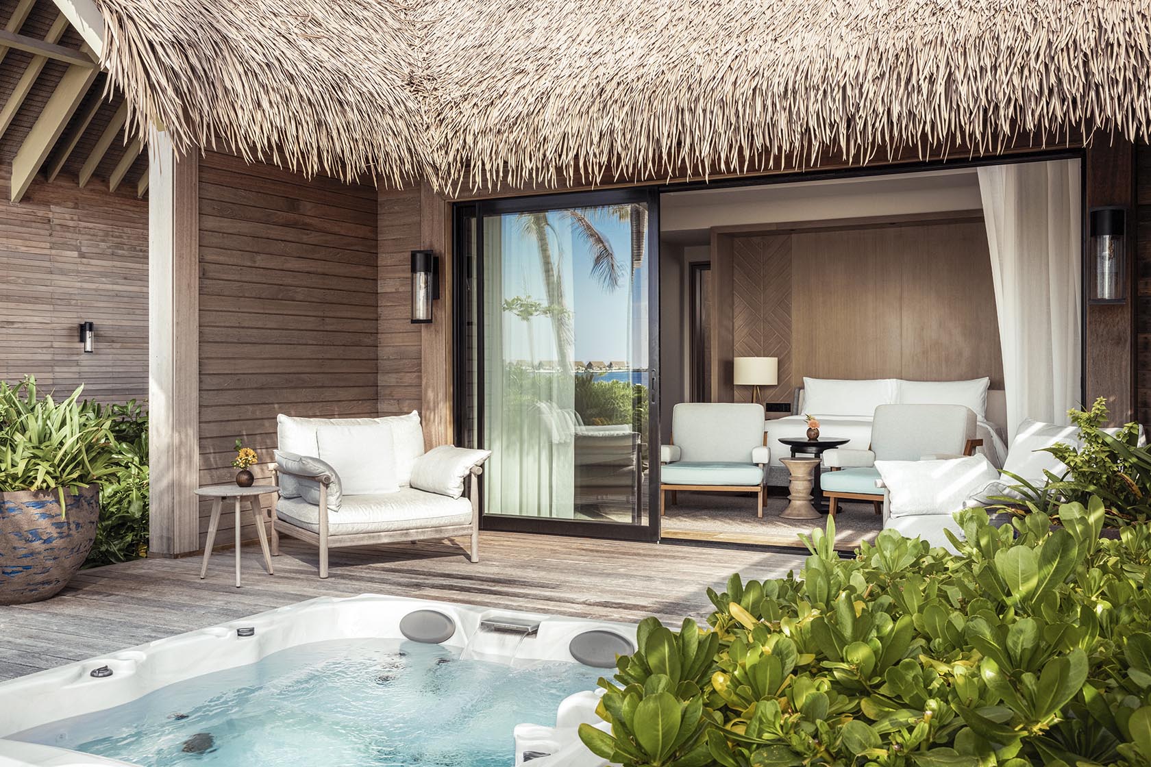 The island’s isolation from the main Waldorf Astoria resort allows for one-of-a-kind multigenerational friend and family gatherings in paradise. Where you’ll be revelling in the exclusivity and sublime luxury that you and your other twenty-three travelling companions get the glory in experiencing. Comprising of three elegantly designed villas – a two-bedroom overwater villa, a three-bedroom and a four-bedroom beachside villa, all with their own living, dining and entertaining spaces, swimming pools and jacuzzis, settled beneath the coconut palms amongst lush tropical gardens, absorbing the views of blue.