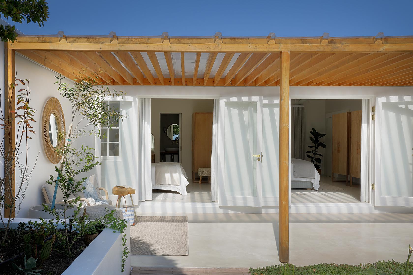 Stretching itself across one vast level of living, dining, entertaining and reclining spaces – with a rooftop garden and lounging area, maximising on the views of the landscape – Kinsail Beach Villa inhabits an age-old charm that seamlessly blends with its contemporary characteristics. Voluminous lounging areas are for basking in the sunshine that streams through the glass sliding doors and windows. Drawing you out with the seagulls, calling one another in their flocks, around the clock.