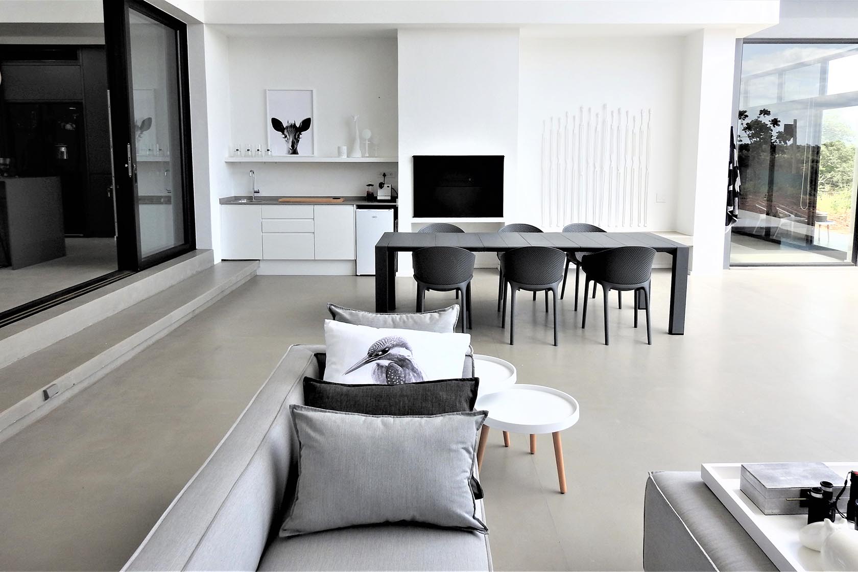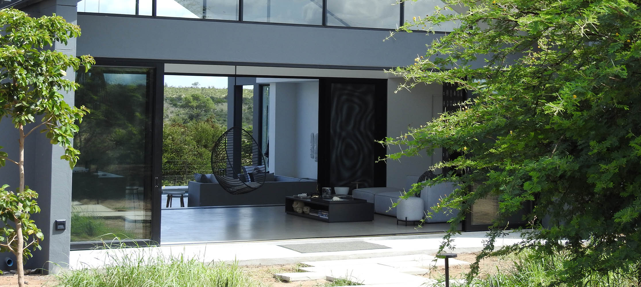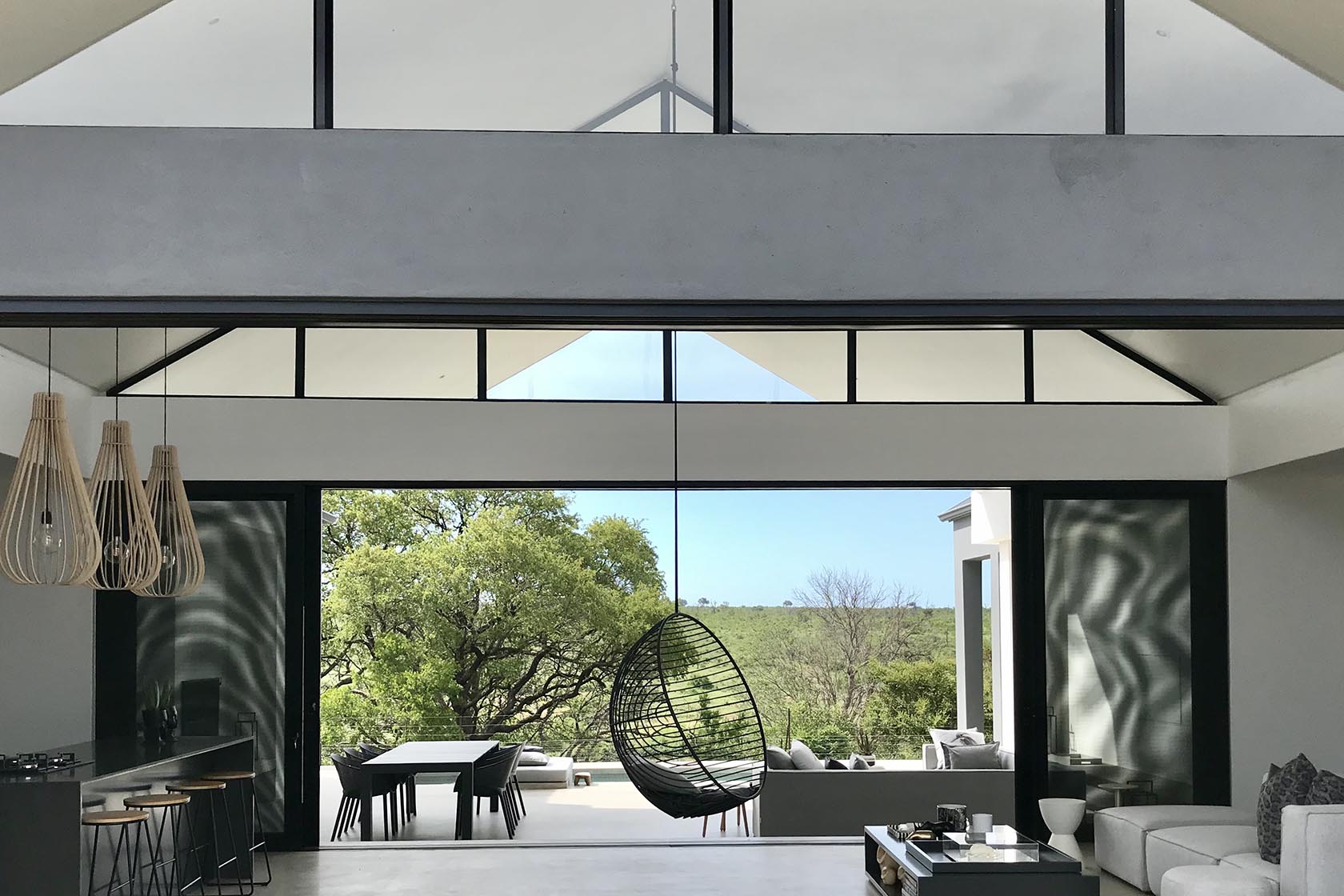 Set on one level of expansive open plan living, dining and reclining spaces, this bush hideaway has been gently planted amongst the Mahoganies, the Marulas, the Acacias, and the Leadwoods, allowing their leaves to dapple the walls and surfaces from an abundant source of natural light.