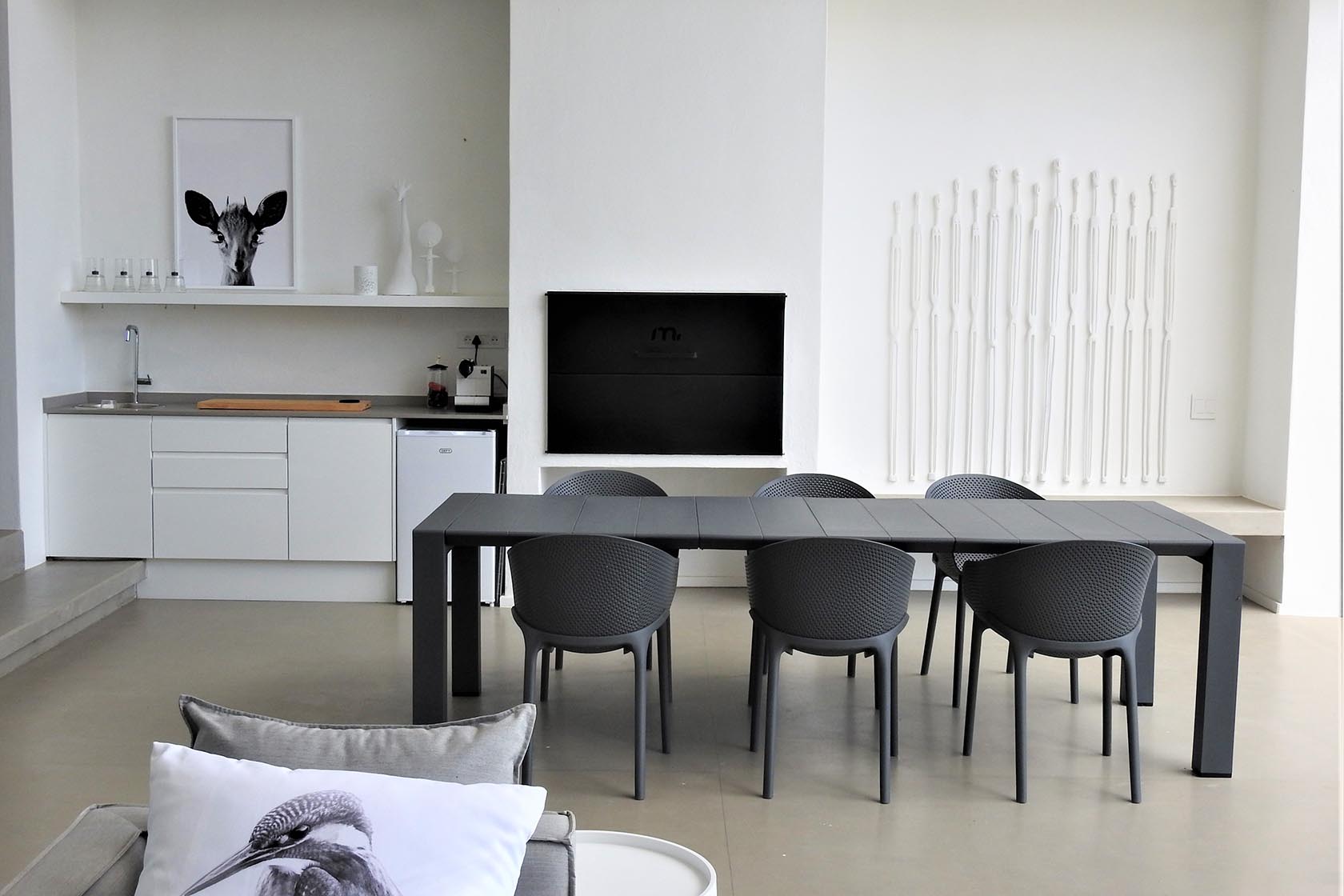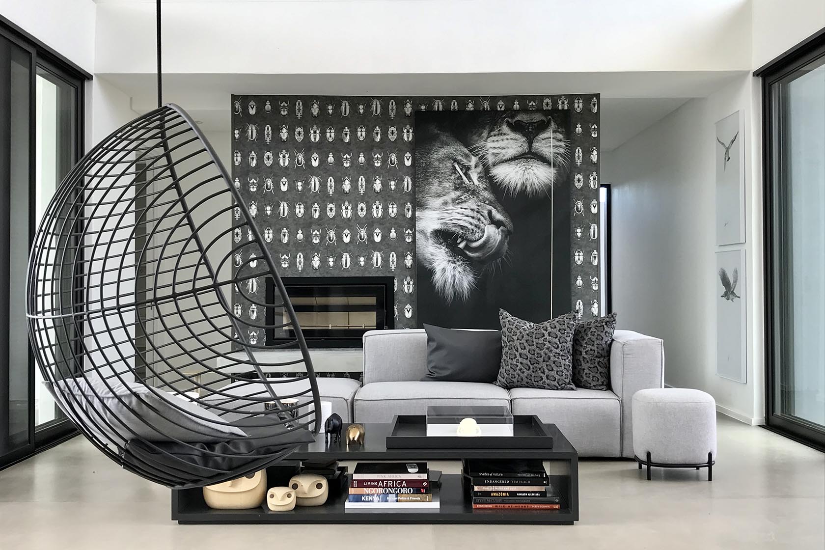 Impressive 2.5-metre canvases of Ross Couper’s wildlife photography adorn the otherwise naked walls, alongside some Kingfisher pencil drawings by Andre Olwage, with a collection of a local sculptor’s work making the odd statement, and the bushveld doing the rest.