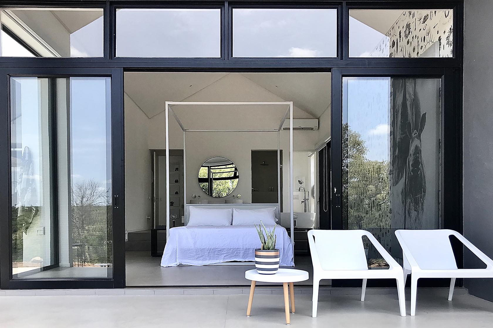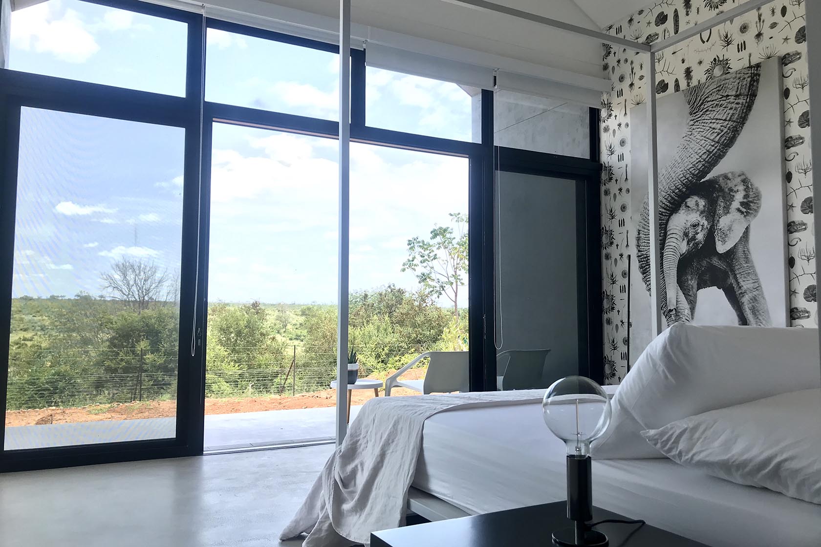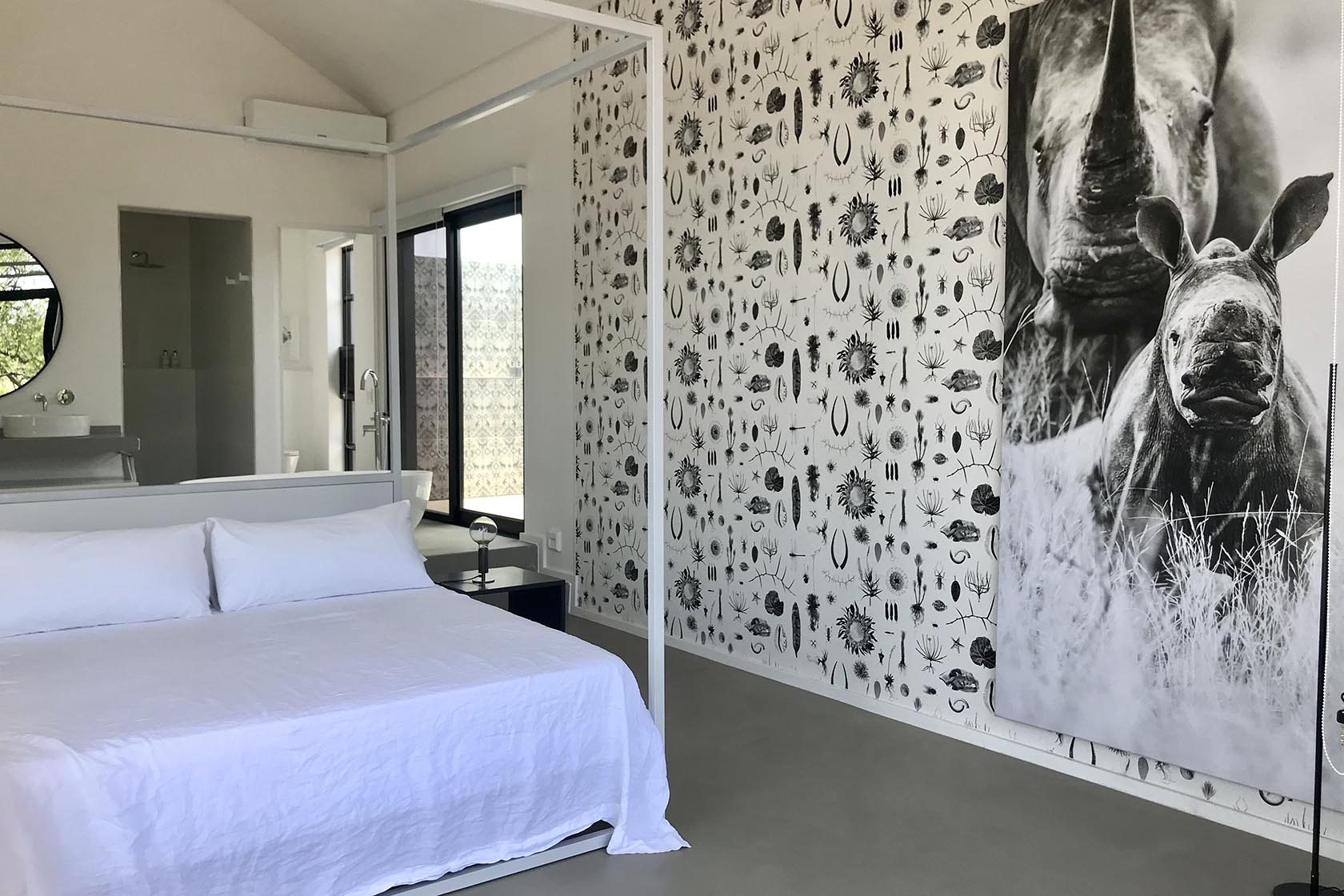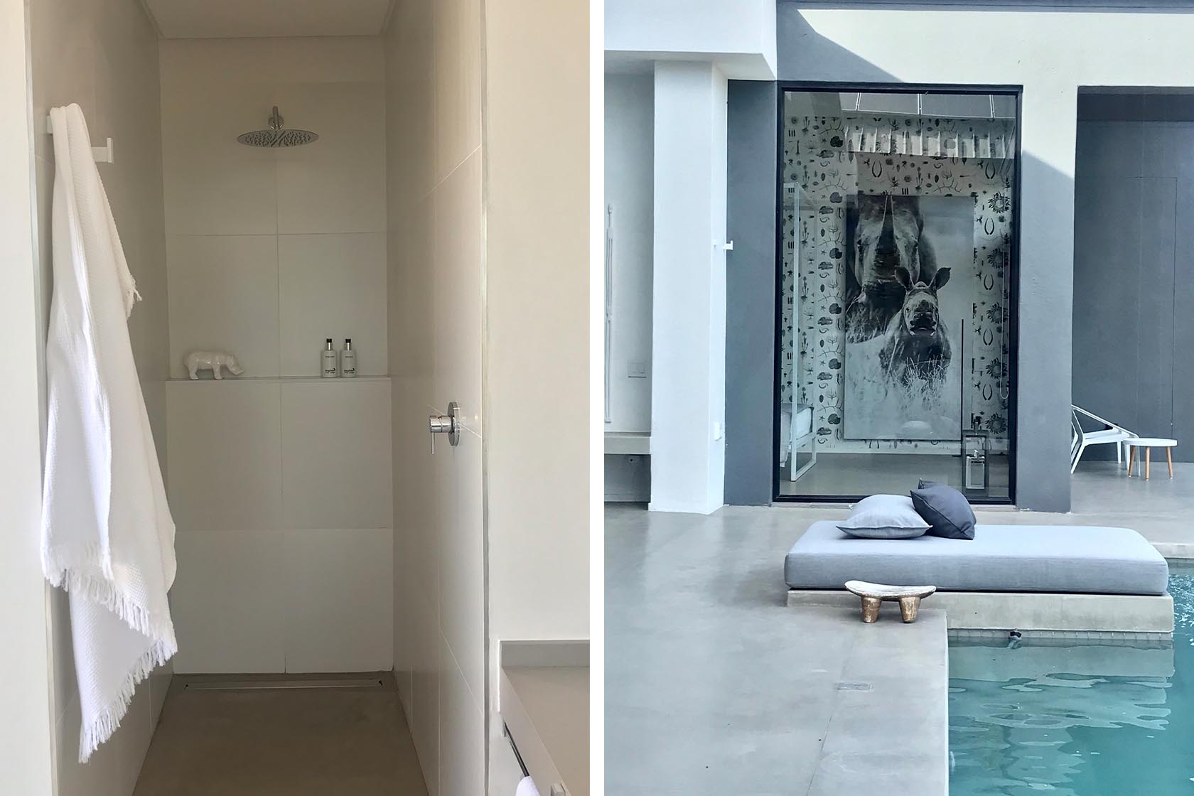 She wished for her bush retreat to be simply lowered from the African skies and embedded into the beauty of the land it occupies. Yet with all of the necessary luxuries and amenities that come with modern-day safari living. Fine furnishings, luxury linens, modern appliances, decadent bathrooms, outdoor showers, massive glass doors and windows, screed cement floors and that delightfully inviting swimming pool make life very easy in such a remote location.