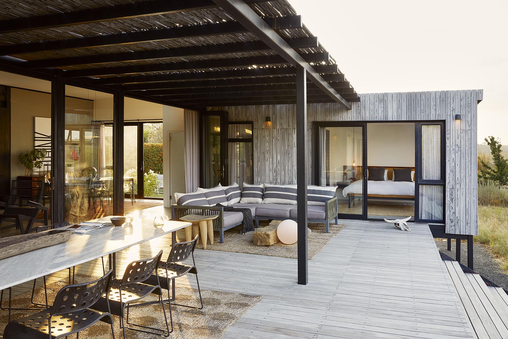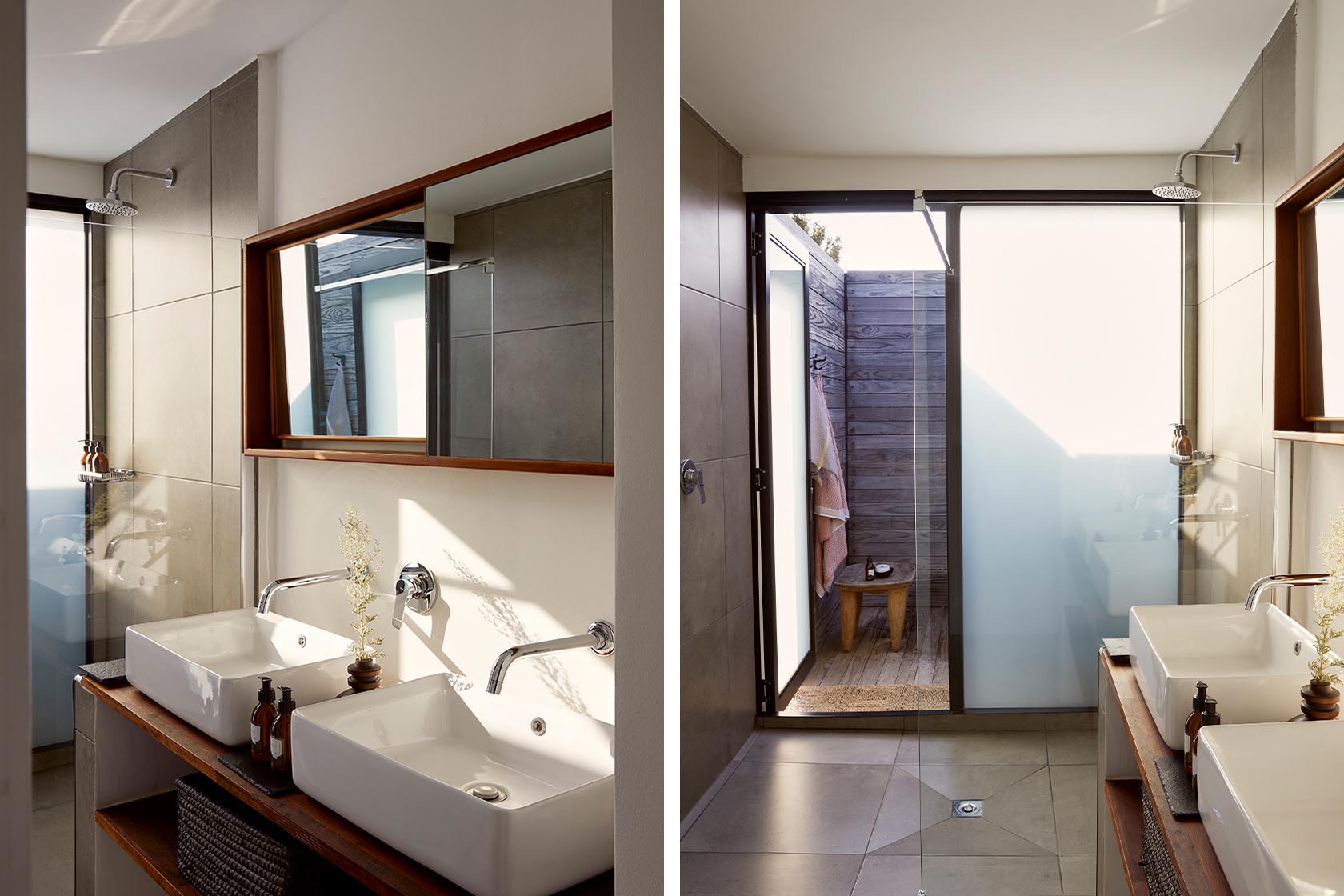 Its double ensuite bedrooms flank the hub of the home with their own views – the main ensuite with an outdoor shower and the guest room with their own lounge chairs on the patio – allowing for that extra elevation of space.