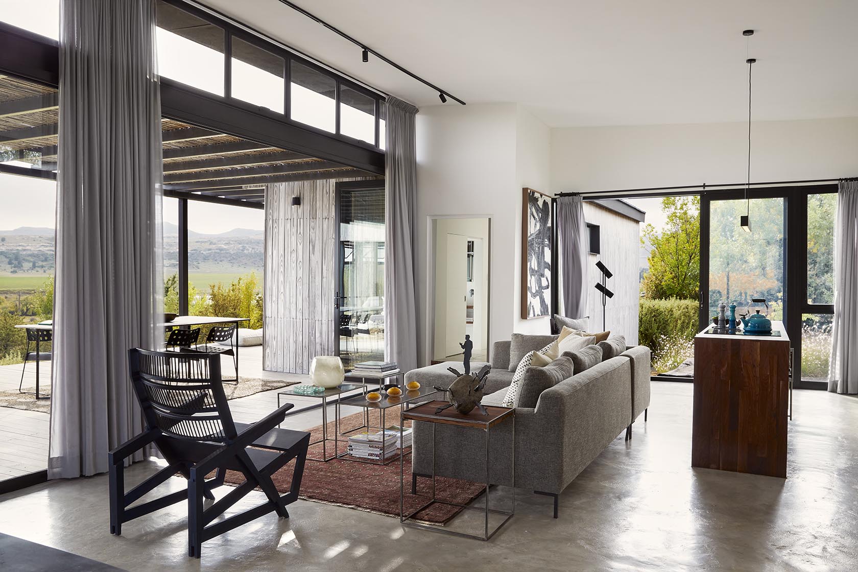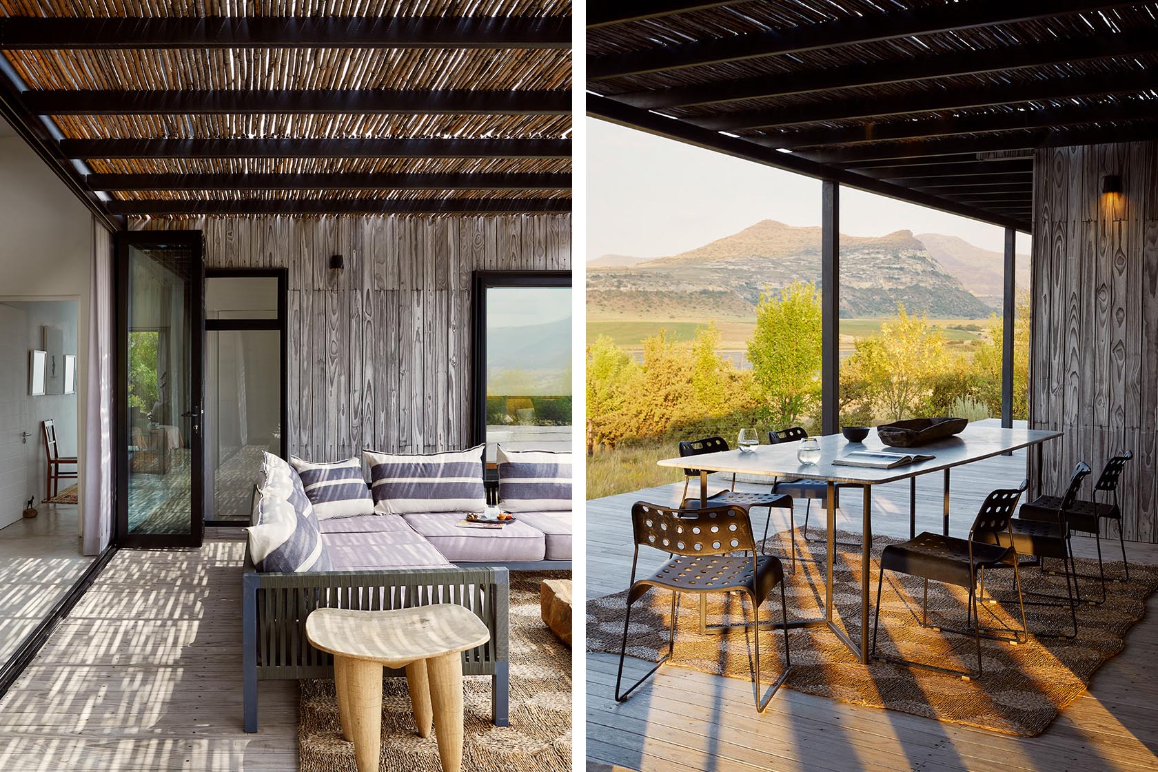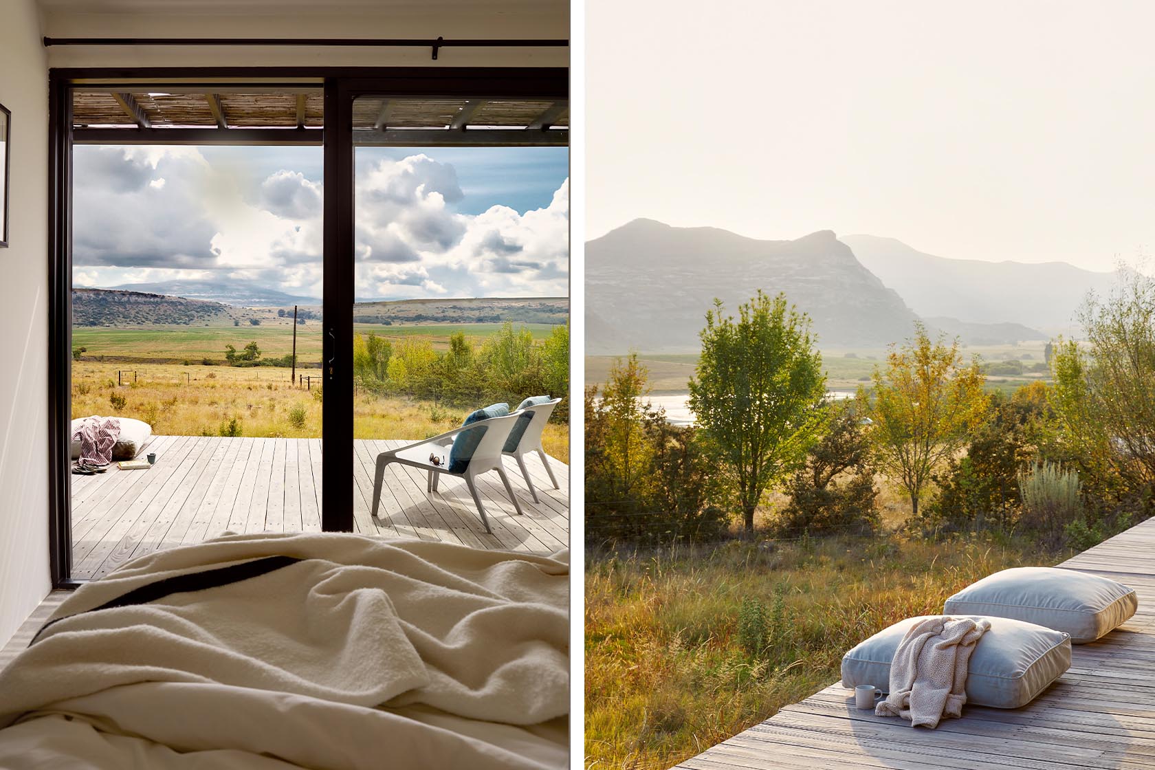 And then there are the views. They somehow denounce themselves as being the mark of a land far, far away, without commanding your attention. The Maloti Mountains draw your eye through the floor to ceiling glass, over the long deck, across the working farmlands, around the willow trees, the dam and the river, towards the horizon and beyond.