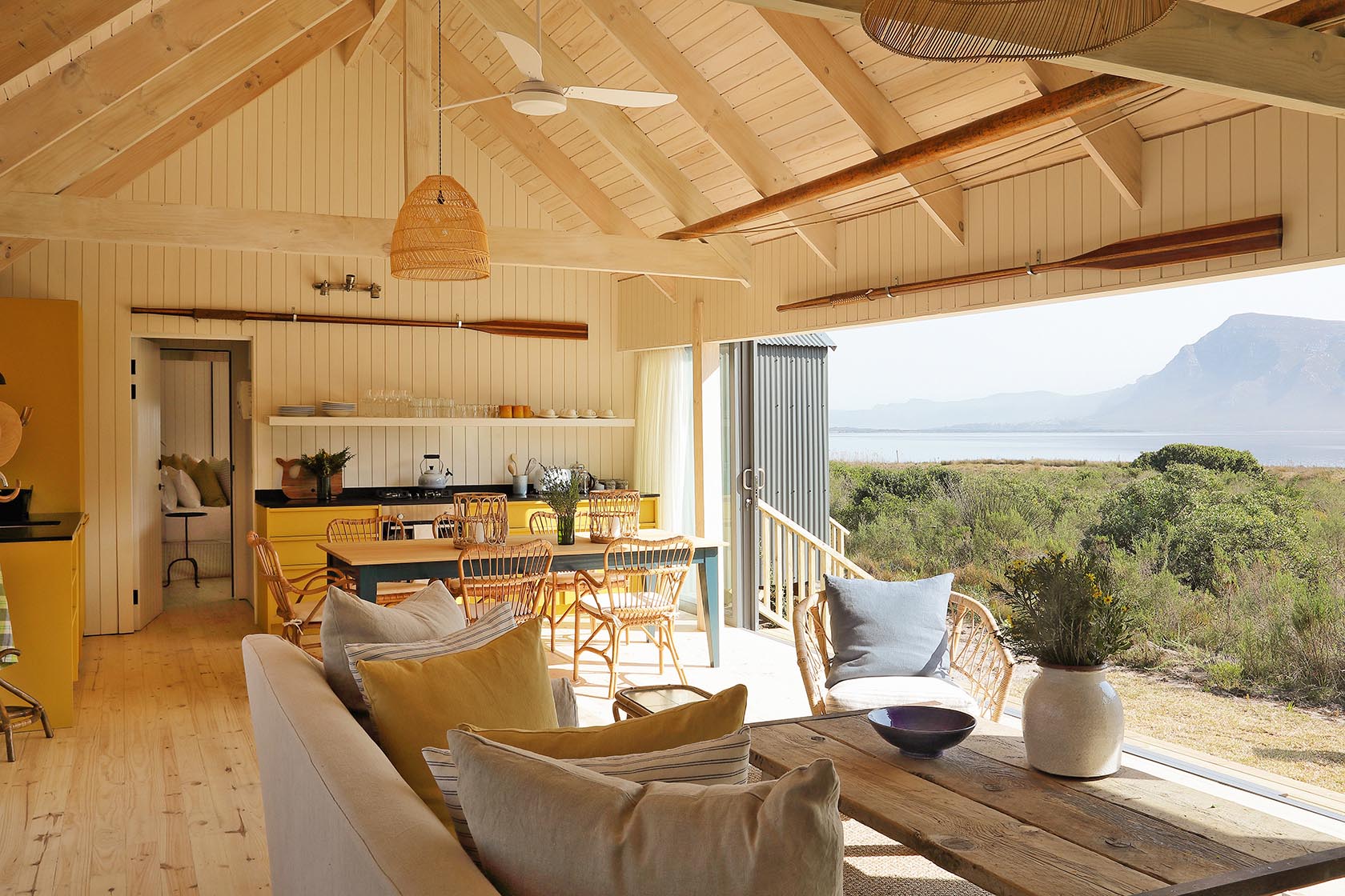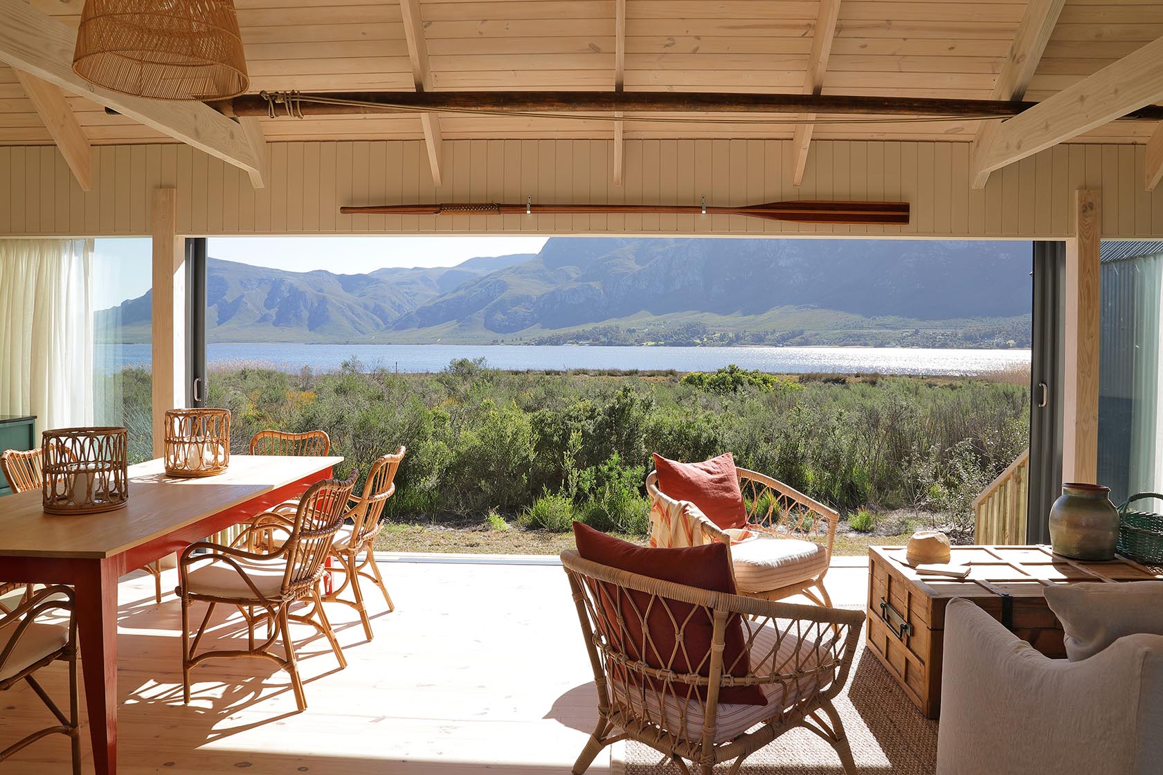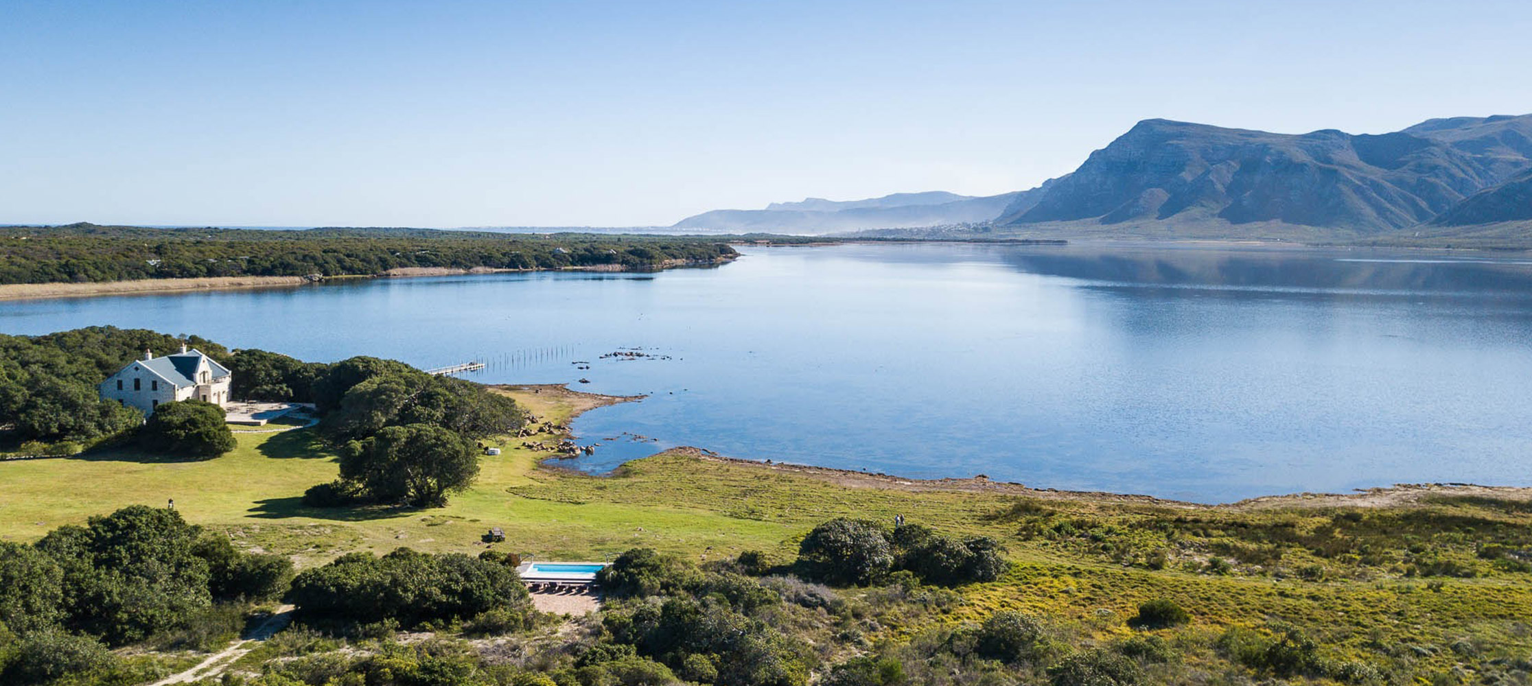 Settling beside the swimming pool and at the long dining table for endless hours of feasting, shaded by ancient milkwood. Imagine it’s you and your clan at this special spot, on the banks of the Klein River Lagoon overlooking the Maanschynkop mountains within the Walker Bay Nature Reserve. Where the ethos of its existence is as in line with your go-slow itinerary and adventurous activities, as it is with the ecosystem of its surroundings.