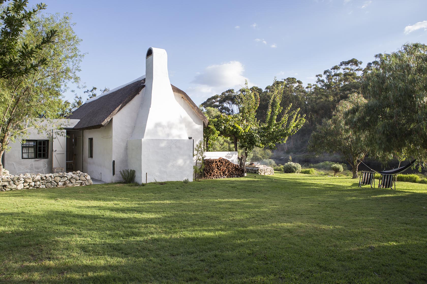 There’s a lot of history to this beautiful bolthole in the Western Cape countryside. Settled along the banks of the Duiwenhoks River, Vermaaklikheid – loosely translated from Afrikaans, means ‘enjoyment’, ‘entertainment’ or ‘recreation’. It’s a perfectly fitting name for such a wildly, tranquil spot. Seemingly unto
