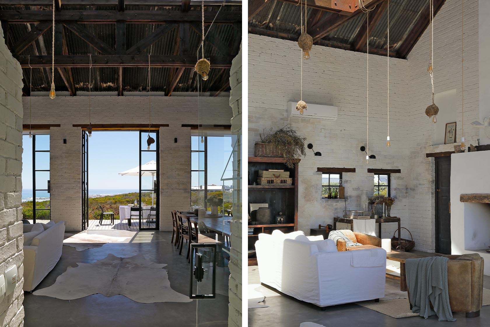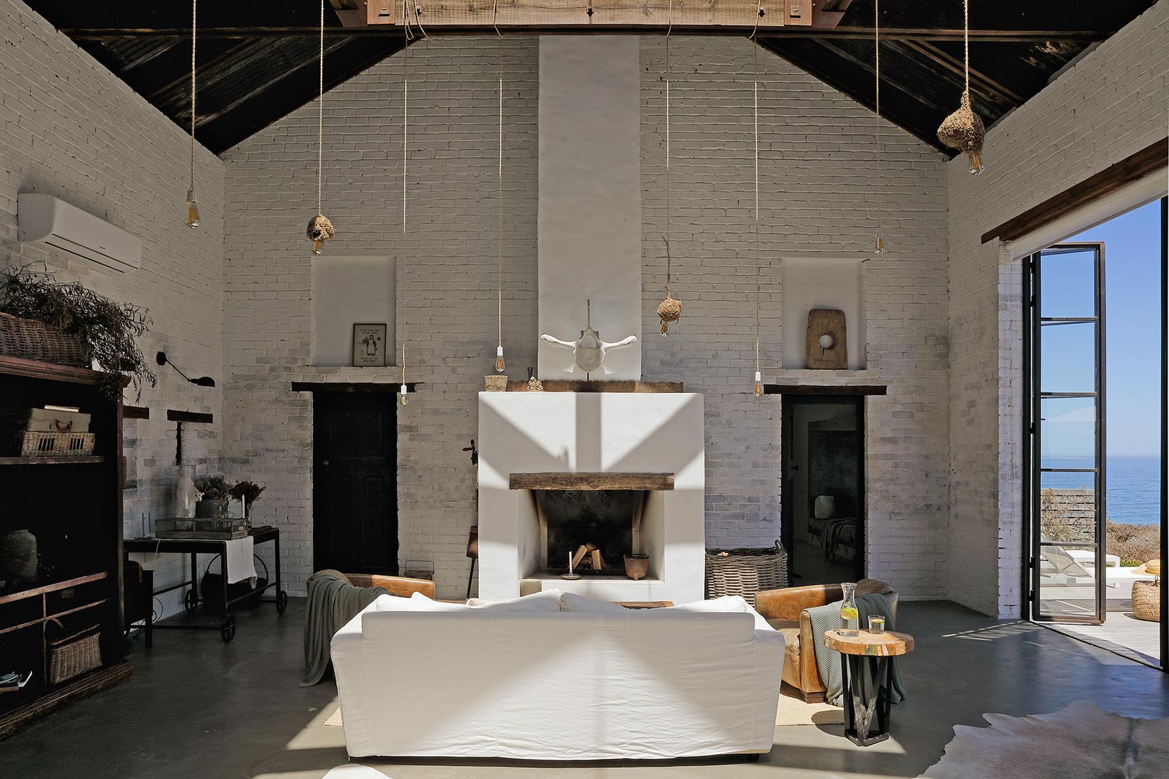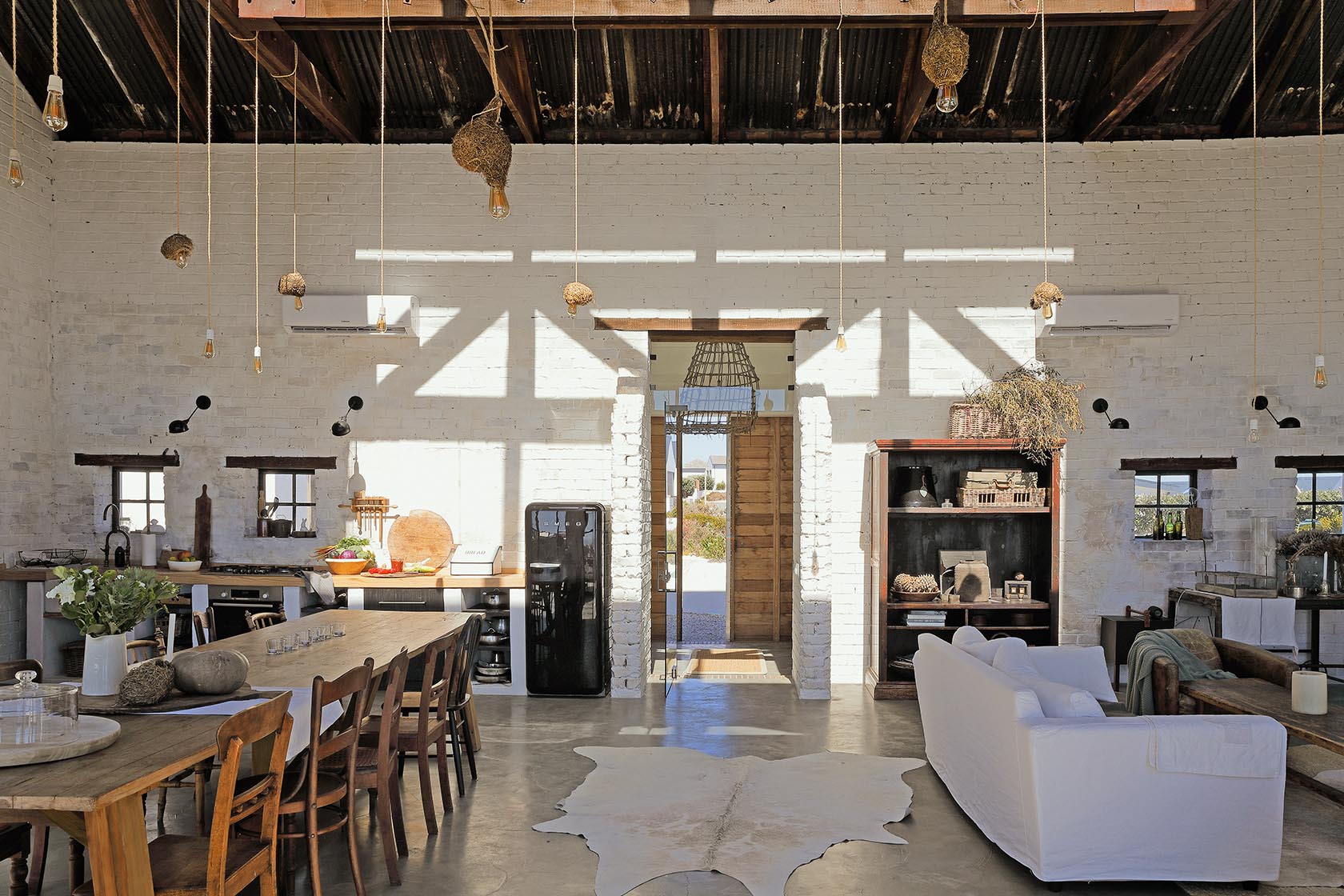 It makes sense with the use of both bold and simple statements about a home, a lifestyle and a passion. About what matters most to us, and how we should go about attaining it. Such a place exists on the beautiful West Coast, within the burgeoning town of Yzerfontein. Where the white-washed brick walls, the three and a half metre steel and glass doors, the polished cement screed floors and old factory steel roof with pine timber rafters open up an insightful conversation on creativity.