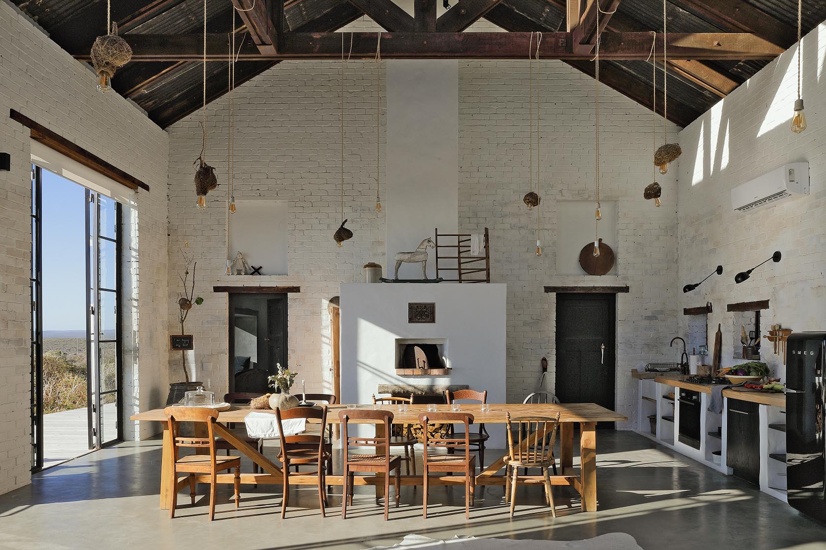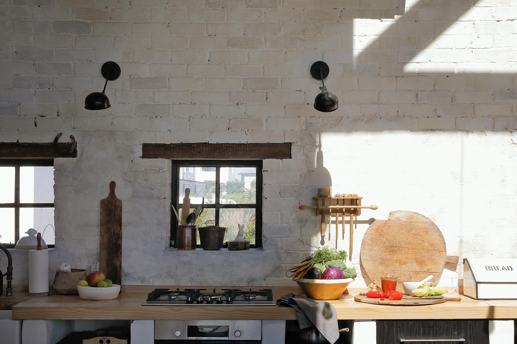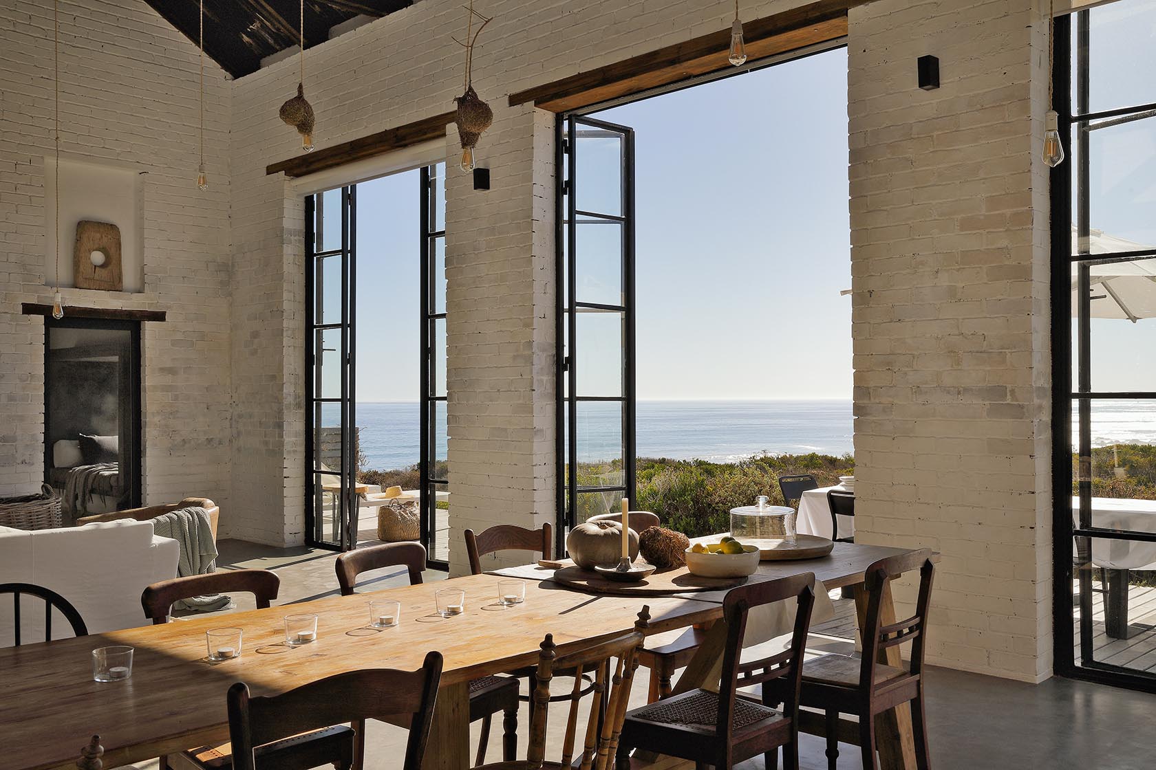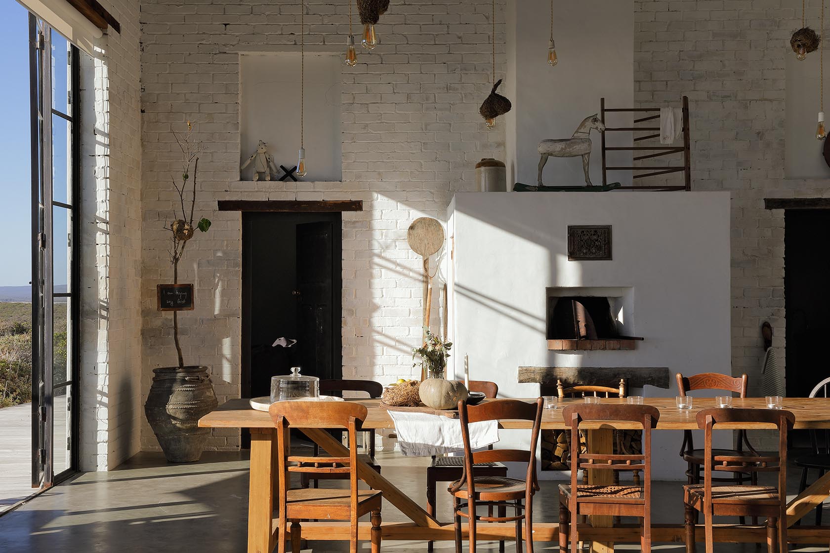 It makes sense with the use of both bold and simple statements about a home, a lifestyle and a passion. About what matters most to us, and how we should go about attaining it. Such a place exists on the beautiful West Coast, within the burgeoning town of Yzerfontein. Where the white-washed brick walls, the three and a half metre steel and glass doors, the polished cement screed floors and old factory steel roof with pine timber rafters open up an insightful conversation on creativity.