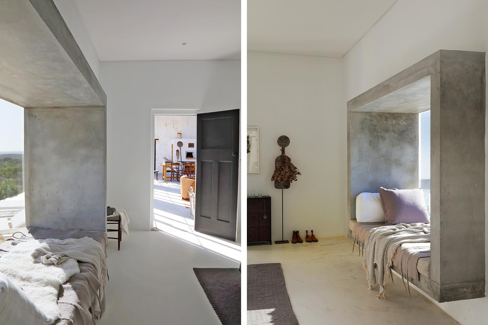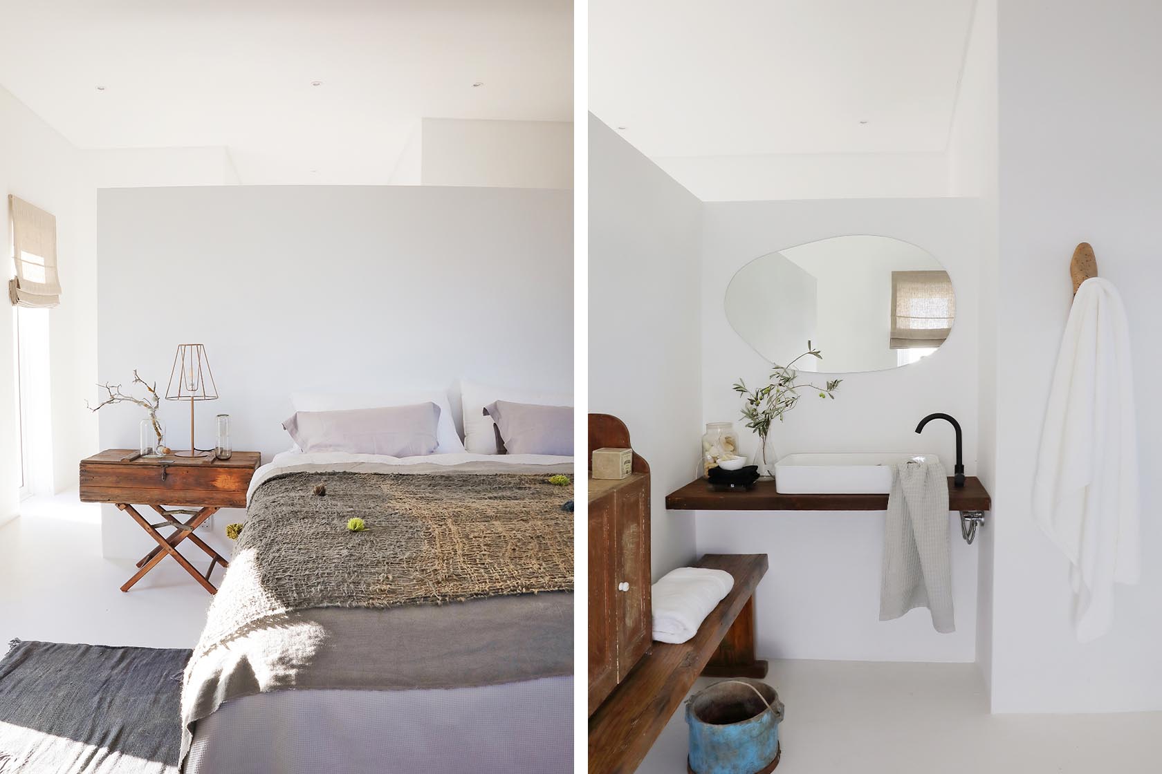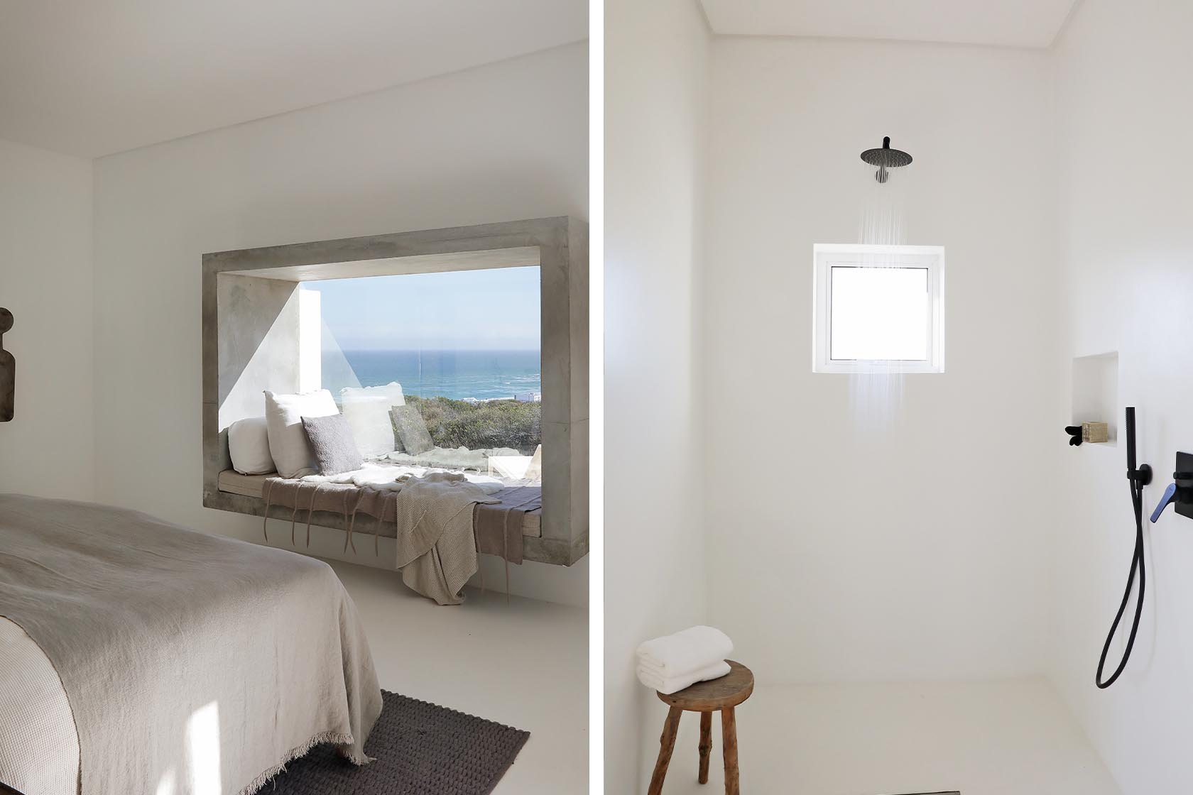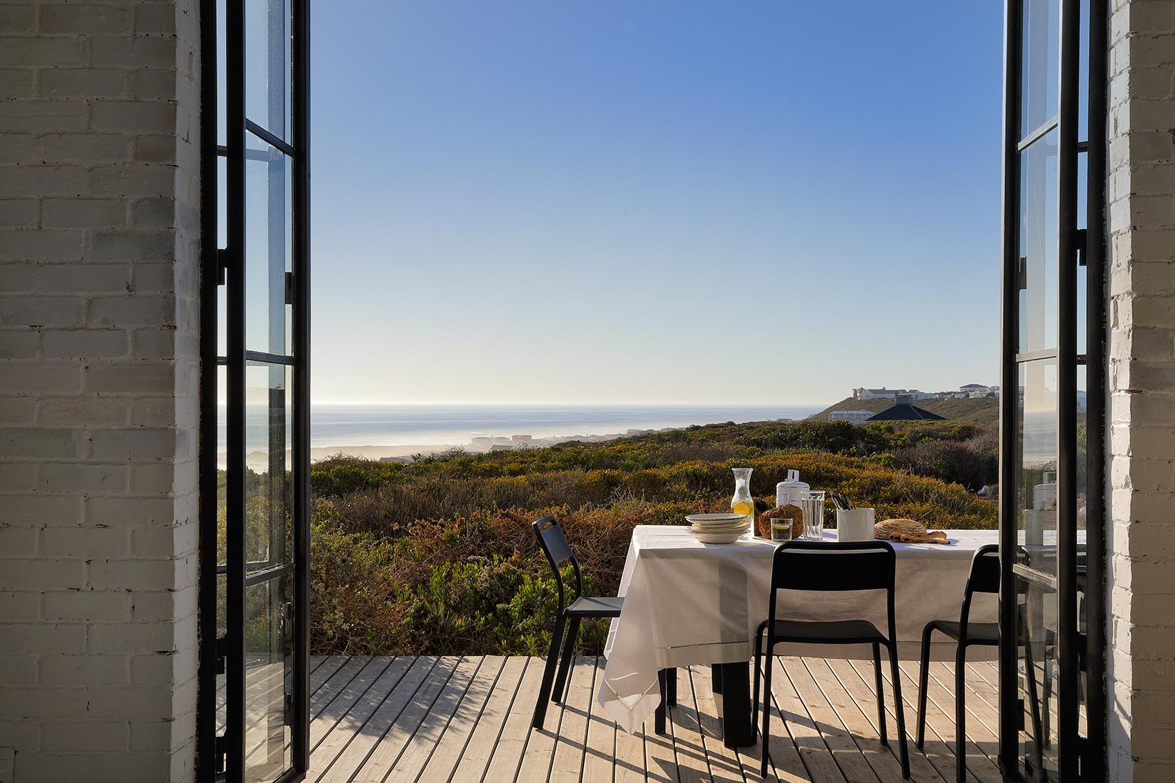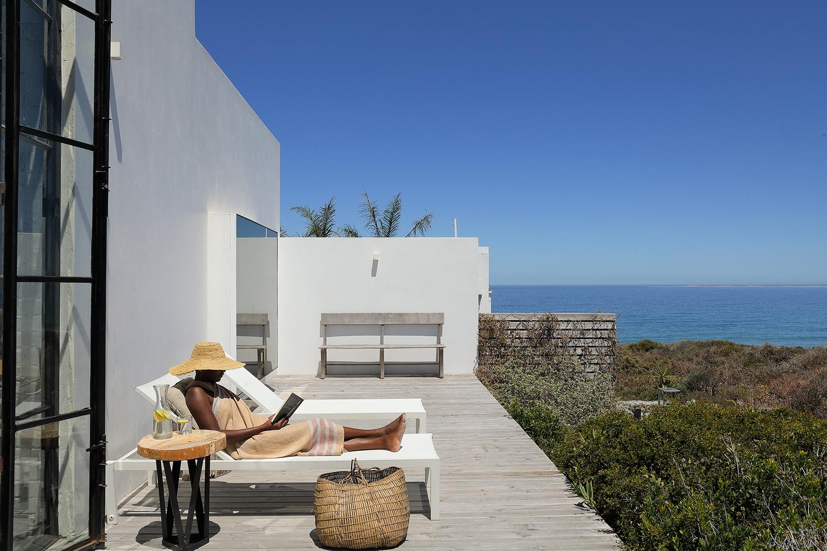 Just over an hour’s drive from Cape Town, settled high on the hills above the rolling dunes that mark the new developments of the old town of Yzerfontein, The Barn beckons you in to an expansive space of inspiration, comfort and utter romance. Spanning one voluminous level of an open-plan living, dining and entertaining space, its two ensuite bedrooms either side and a long sundeck unfolding over the landscape, this hideaway displays its attributes generously and declares its intentions affectionately. Leaving little to the imagination, it’s all about the spectacular views of the ocean, the abounding nature and the town below that unravel from the tall glass doors and clever tranquil window seats. Coming from architectural, design and property development backgrounds, the owners have honed their skills and fine-tuned their creative ingenuity with finesse, and created a home where passion marries prosperity without a hint of pretension. A canvas of white is embellished by soft hues of brown and blue, stone, gold and green. Natural textures like leather, animal hides, linen and hemp adorn the furnishings, the floors and the comfy beds. More wisdom seeps in from the way in which the bespoke pieces of furniture and age-old collectables have been curated around The Barn. Each telling their stories about what they once were and how versatile they can be.