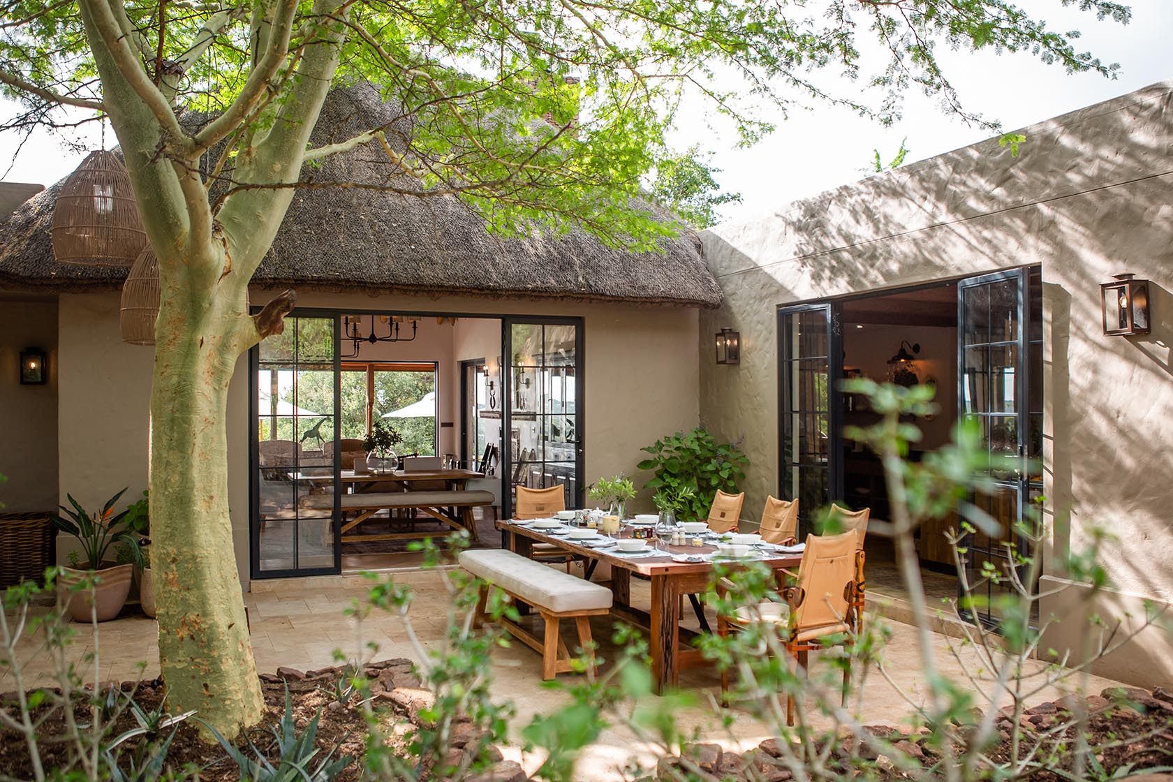 Large doors and windows open out into the indigenous gardens that pave the way to a cosmos of wilderness. The occasional kudu, impala or zebra grazing on the lawn. Even though the boundary between you and the great expanse of the reserve is fenced, the antelope like to claim the green that’s still rightfully theirs. Allowing you an ever-constant exchange with the things that you and the clan came here for.